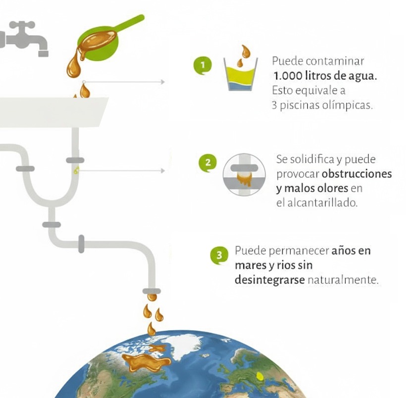 1 Litro de Aceite de Cocina que se arroja directamente al alcantarillado.